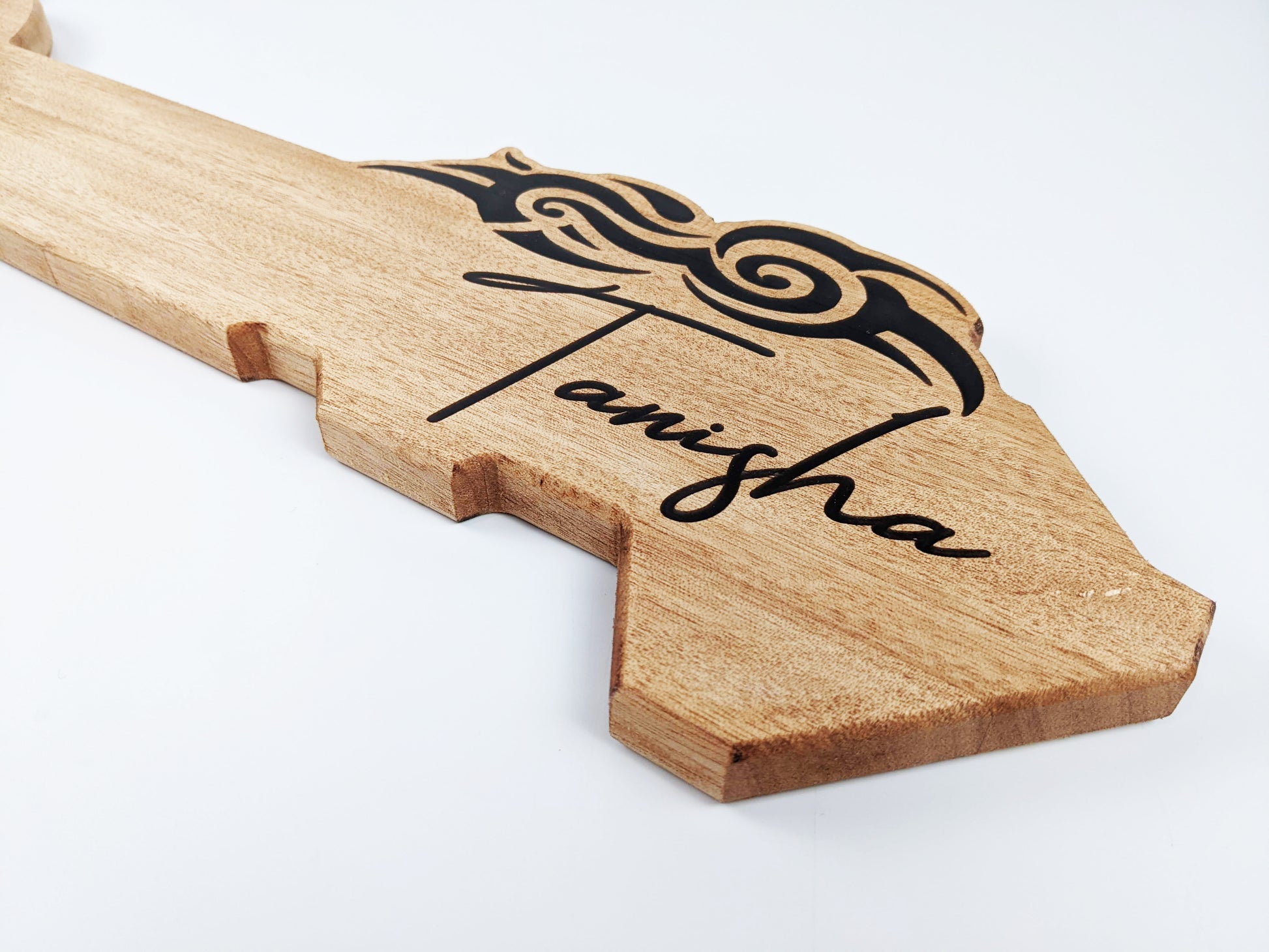 A milestone birthday party key in wood style. This unique celebration will become a treasured memento of your special occasion for years and years to come. It's practical, functional and fashionable, let it take centre place at your special event. This makes it a truly special artwork of an event you'll never want to forget. The key is crafted from hardwood, engraved and finish with epoxy details. The epoxy provides a beautiful backdrop for the engraved details, which include the recipient's name and birth date. Personalise the keys with a person's name and small message if you wish.