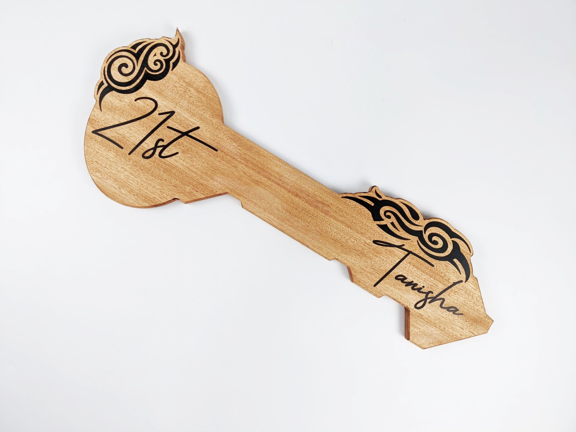 This key sign is made of high-quality wood that has been carefully selected for its durability and beauty. Each piece of wood is handpicked to ensure that the final product is of the highest quality. The wood is then skillfully crafted into the shape of a key, which symbolizes unlocking new opportunities and experiences that come with turning 21.