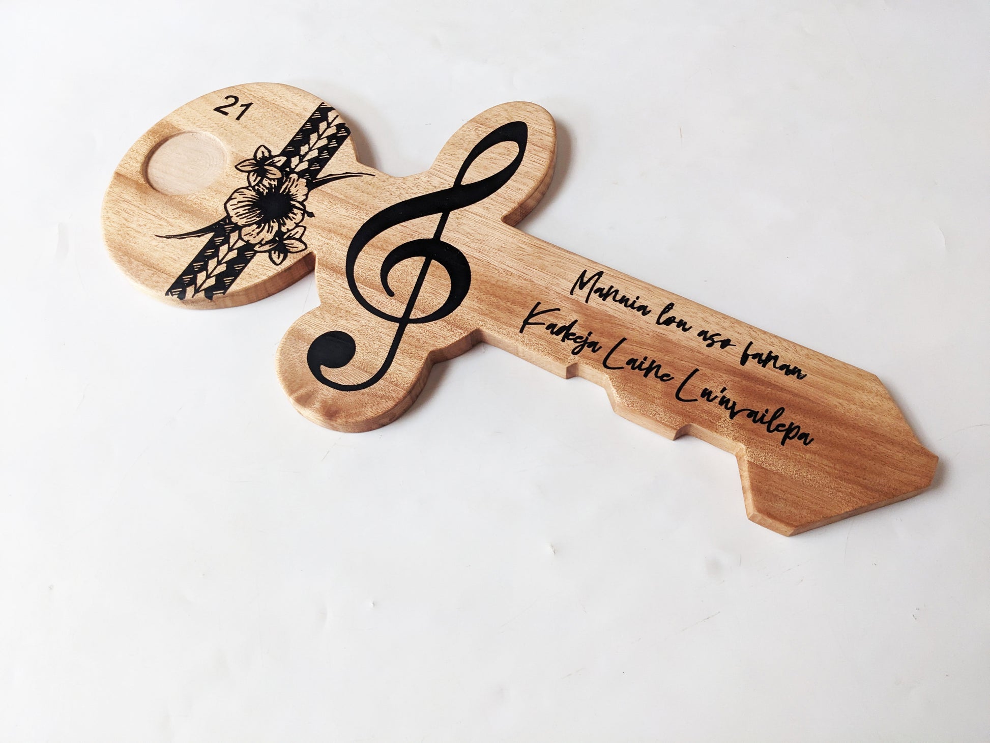 A milestone birthday party key in wood style. This unique celebration will become a treasured memento of your special occasion for years and years to come. It's practical, functional and fashionable, let it take centre place at your special event. This makes it a truly special artwork of an event you'll never want to forget. The key is crafted from hardwood, engraved and finish with epoxy details. The epoxy provides a beautiful backdrop for the engraved details, which include the recipient's name and birth date. Personalise the keys with a person's name and small message if you wish.