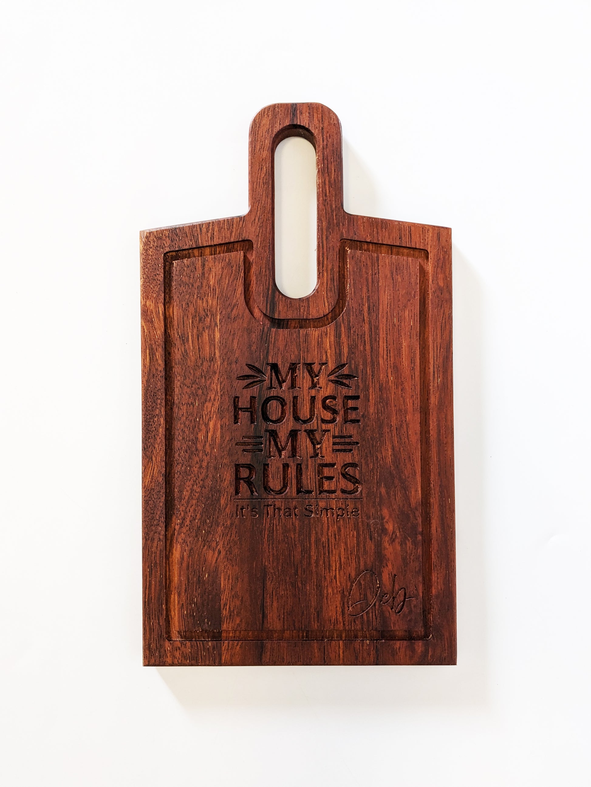 Crafted from high-quality hardwood, our cutting boards are built to last and withstand daily use in even the busiest kitchens. The personalized engraving adds a unique touch to each board, making it a true one-of-a-kind piece that's sure to impress.