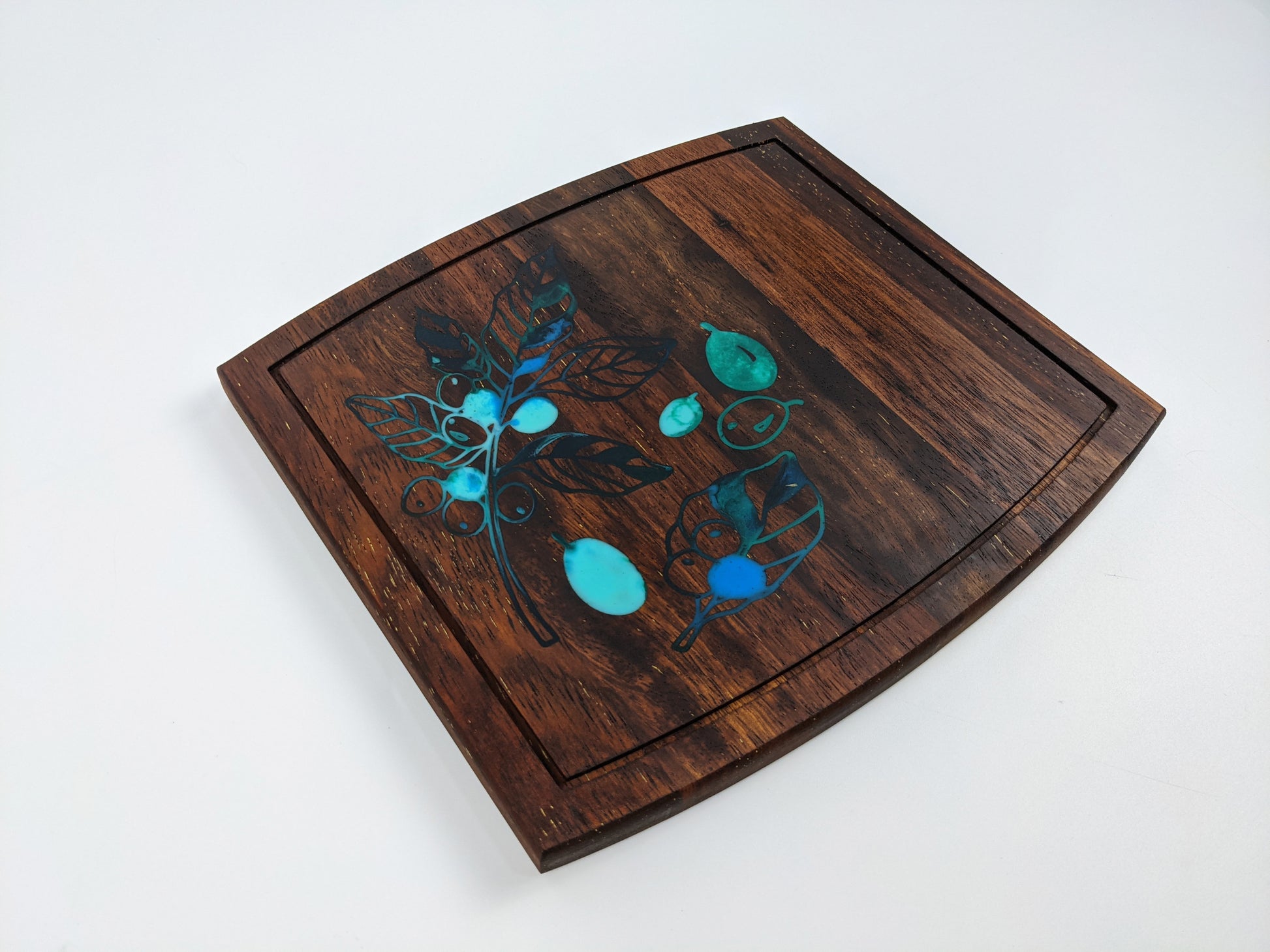Introducing our stunning wood cutting boards, featuring eye-catching epoxy patterns that add a touch of artistic flair to your kitchen. Handcrafted from high-quality wood and epoxy resin, these cutting boards are both functional and visually striking.