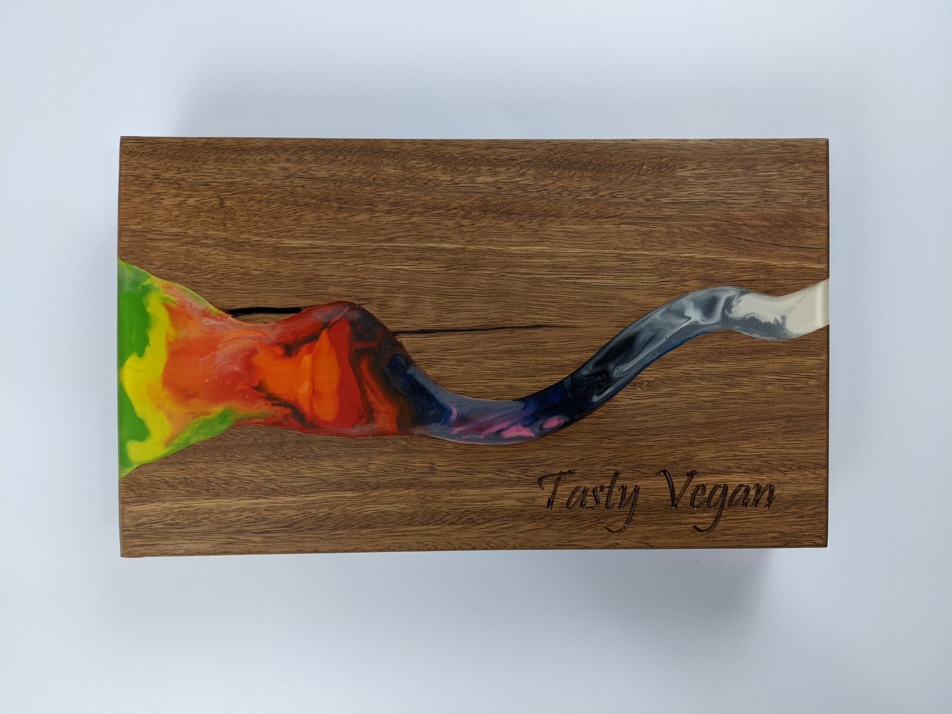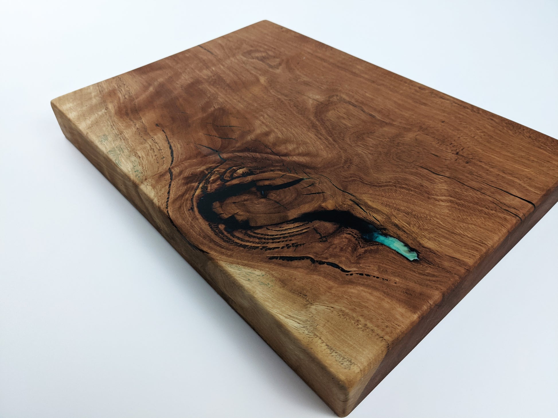 Our Recycled Timber Cutting Boards with Epoxy bring together sustainability and modern artistry in a stunning, one-of-a-kind kitchen essential. Handcrafted from reclaimed wood, each board preserves the natural beauty and unique grain of aged timber, while vibrant epoxy accents fill in the natural imperfections, creating a striking contrast. The epoxy not only adds a splash of color and style but also strengthens and seals the wood, ensuring long-lasting durability.